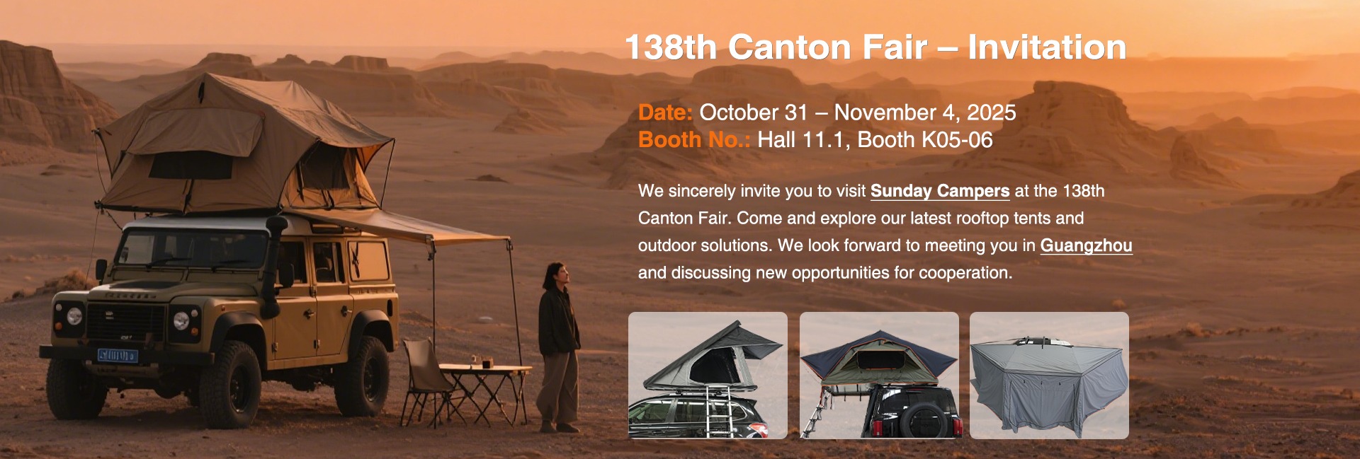 Productos principales:Tiendas en la azotea de carcasa blanda, tiendas en la azotea de carcasa dura, toldos para automóviles, accesorios para automóviles